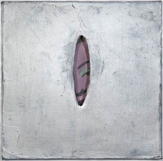 acrylic, found paper (Warhol), cut canvas, 12" x 12" x 1.5"
