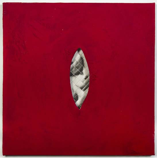acrylic, found paper, cut canvas, 12" x 12" x 1.5"