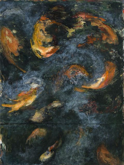 Koi Pond, acrylic/mixed media on canvas, 48" x 36" (diptych) First Prize Expressions of Radnor Wayne Art Center, 2016